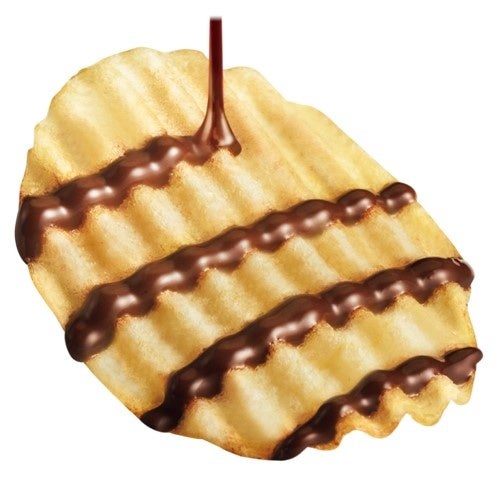 ●厚切りウェーブカットのポテトチップスに、コクのあるミルキーなチョコレートをライン状に丁寧にトッピング。キャラメルの風味がマッチした甘じょっぱい贅沢な味わいが楽しめる、季節限定のポテトチップスです。
