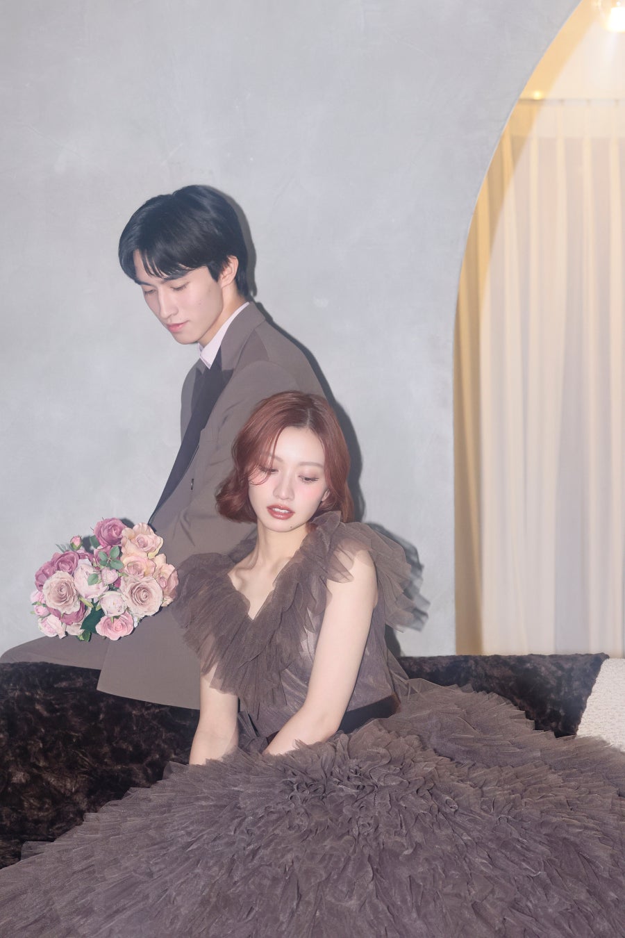 ふんわりと柔らかいライティングにダークトーンの衣装を合わせて