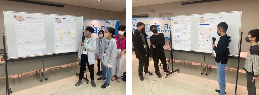 2日間の調査結果は「海砂研究レポート」と「新潟の海のお弁当企画」としてグループごとに発表を行いました。発表では次々と発表者を替えるグループや2人が掛け合いするグループもいてそれぞれの発表スタイルに任せました。好きなテーマを選ぶ海砂研究レポートでは、ビーチサッカーの選手に感化され、海岸清掃に目覚めたことや海岸浸食の学びで見学した2,000台の消波ブロックに圧倒されたこと、砂場を好む魚がどれも美味しかったことなど体験したことすべてが参加者の心に残っていることが伝わってきました。お弁当企画では、製造を担う新潟三新軒の遠藤先生の他に、フードコーディネーターのこじまひでき先生、お弁当の包装を担当する新潟イロドリプラスの野崎先生も登壇し、魅力ある弁当作りを手ほどきしました。このアイデアを生かしたお弁当は、今年12月中に駅弁としてJR新潟駅他で販売される予定です。