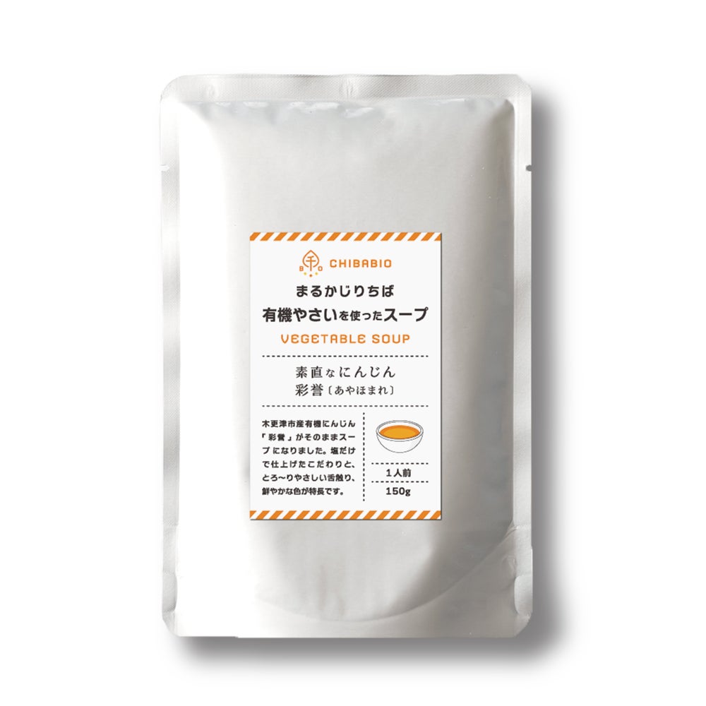 千葉県産木更津市有機にんじん「彩誉(あやほまれ)」を使用し、素材の味を楽しんでいただくため塩のみで仕上げました。とろりとやさしい舌触り、鮮やかな色が特長です。