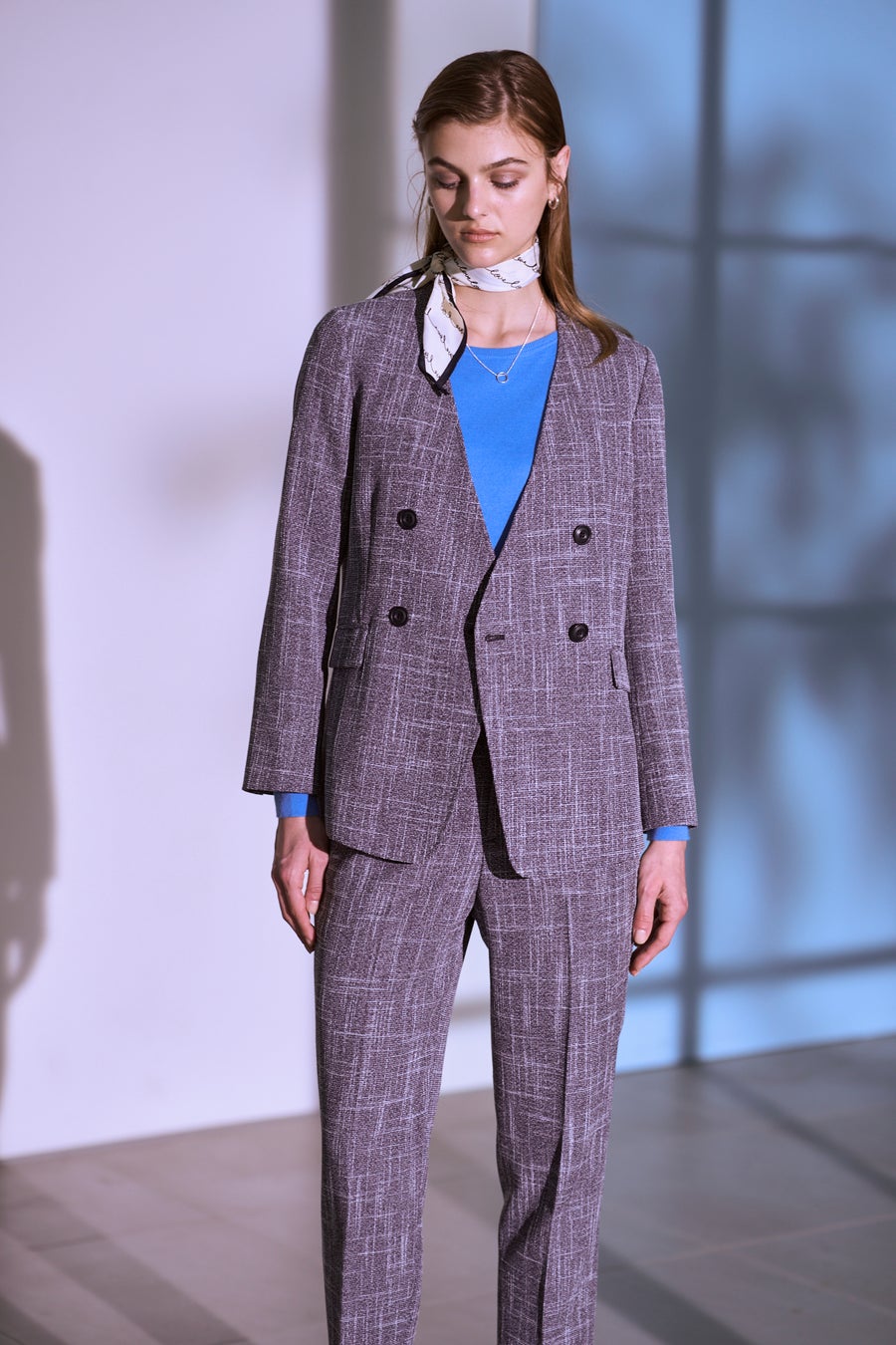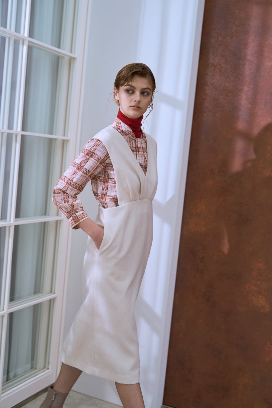内面から滲み出る「艶感」を持つSENSUALITYな女性に向けて、快適性とセンシュアリティーを表現したコレクションは、ソフトな軽さとCOZYな心地良さ、サスティナブルを意識し、天然混素材と適度な艶感を持つ素材を使用したクリーンでフェミニンそしてこだわったフォルムで構成したワードローブを展開しております。