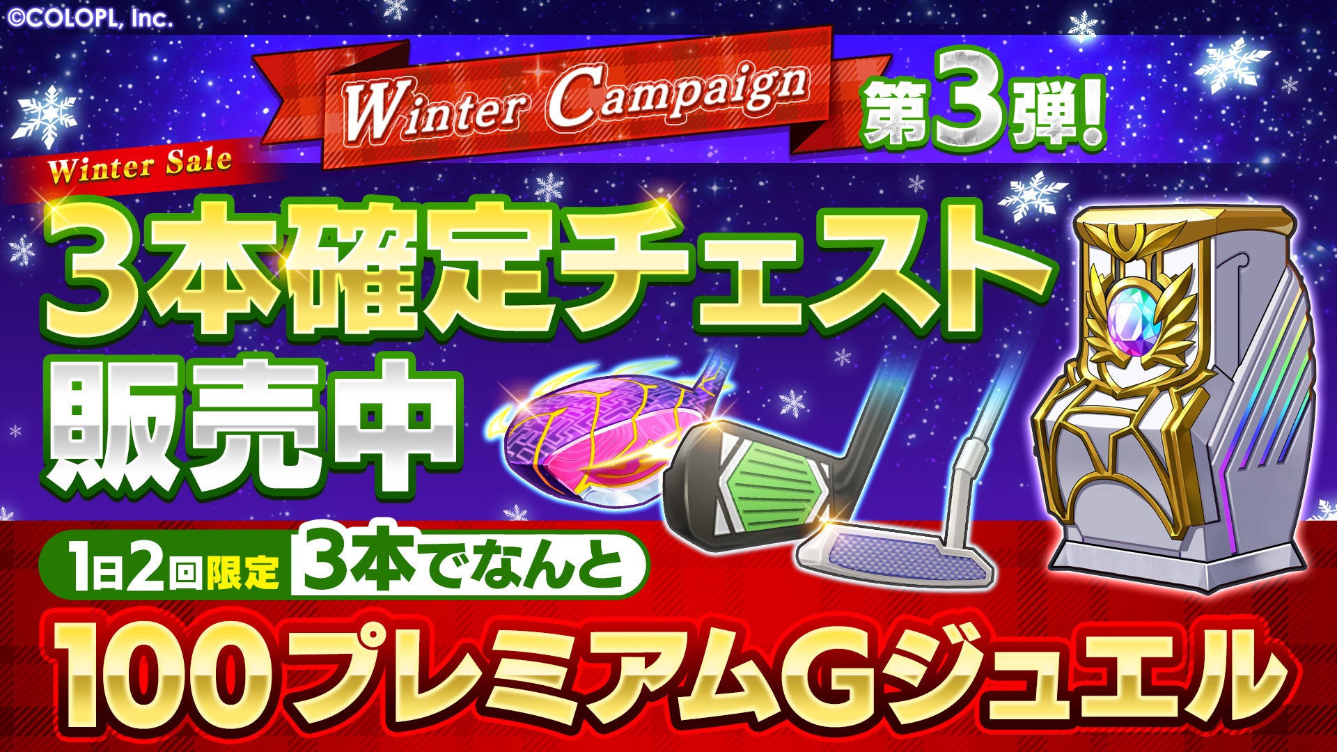 株式会社コロプラ(代表取締役社長:宮本貴志、本社:東京都港区、以下「コロプラ」)は、スマートフォン向け新作ゲーム『白猫GOLF』にて、「Winterキャンペーン第3弾」を開始したことをお知らせします。