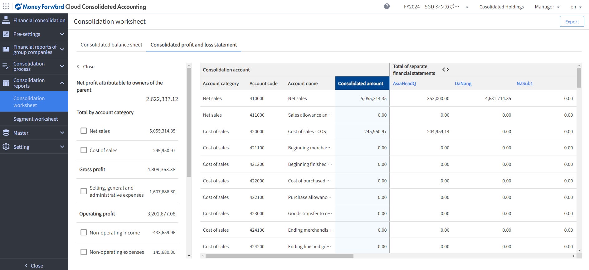 M&Aやグループ内での資本再編も高頻度に実施している弊社グループにおいて『マネーフォワード クラウド連結会計』の特徴である複数の連結単位・連結通貨の設定の柔軟さは大きな魅力と感じています。