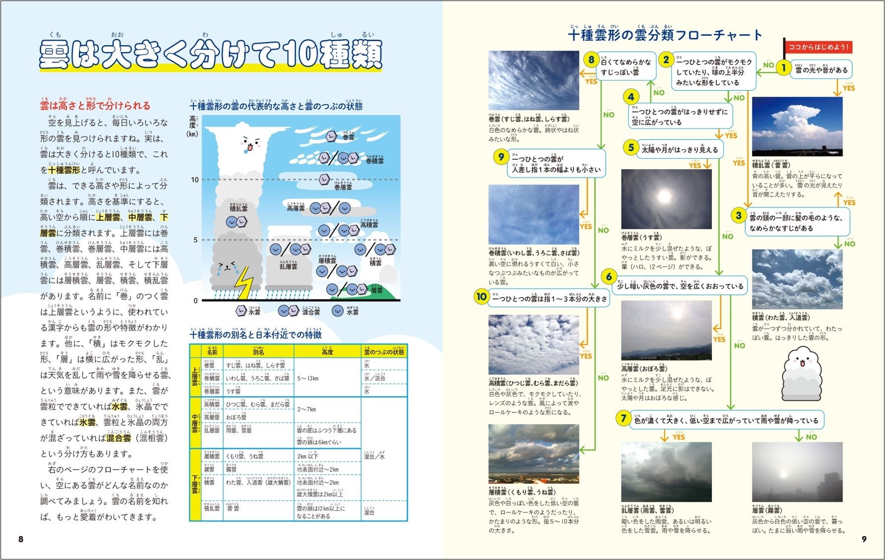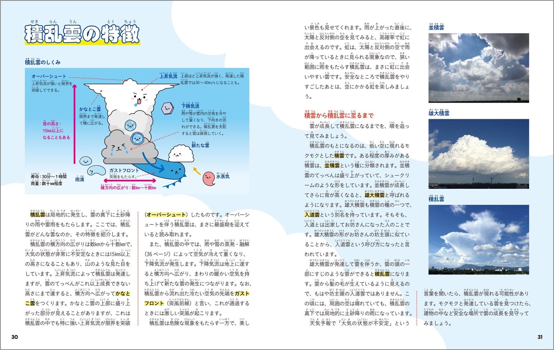 気象についてより興味を持つことができ、雲の観察や、何気なく見ていた空、天気予報がより楽しくなる情報が満載の一冊です!