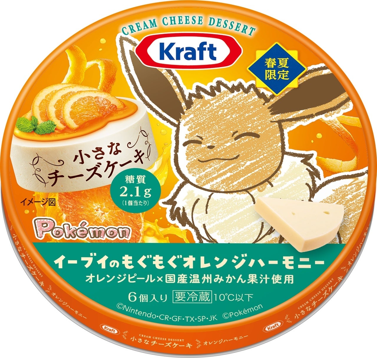 森永乳業 ポケモンパッケージ第二弾!今度はチーズケーキで数量限定登場「クラフト 小さなチーズケーキ イーブイのもぐもぐオレンジハーモニー」4月8日(火)より全国にて数量限定発売