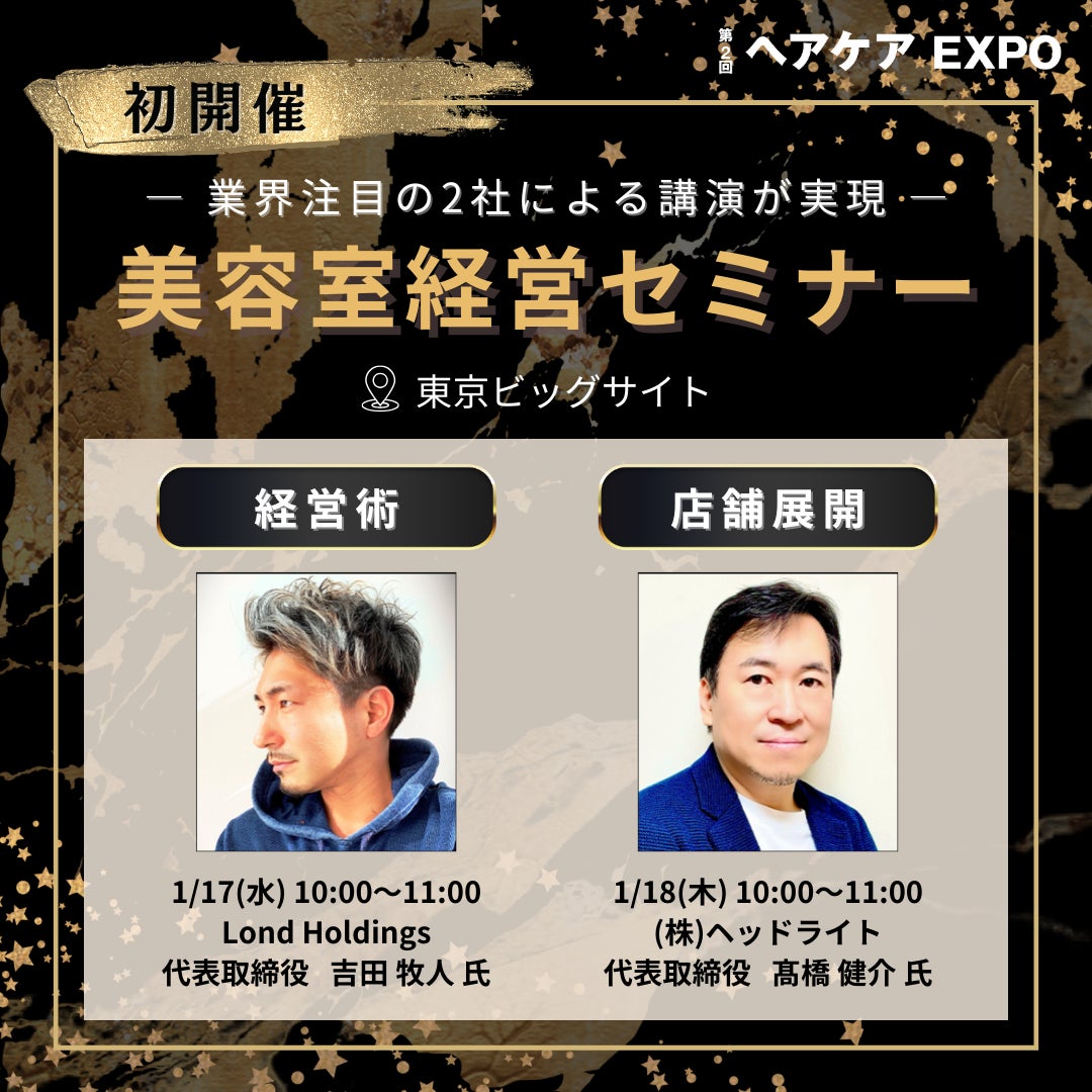 業界で注目を集める2社による講演が実現いたしました。「店舗展開」「美容師採用に伴うインボイス対応」など、今気になるテーマについて徹底解説していただきます。