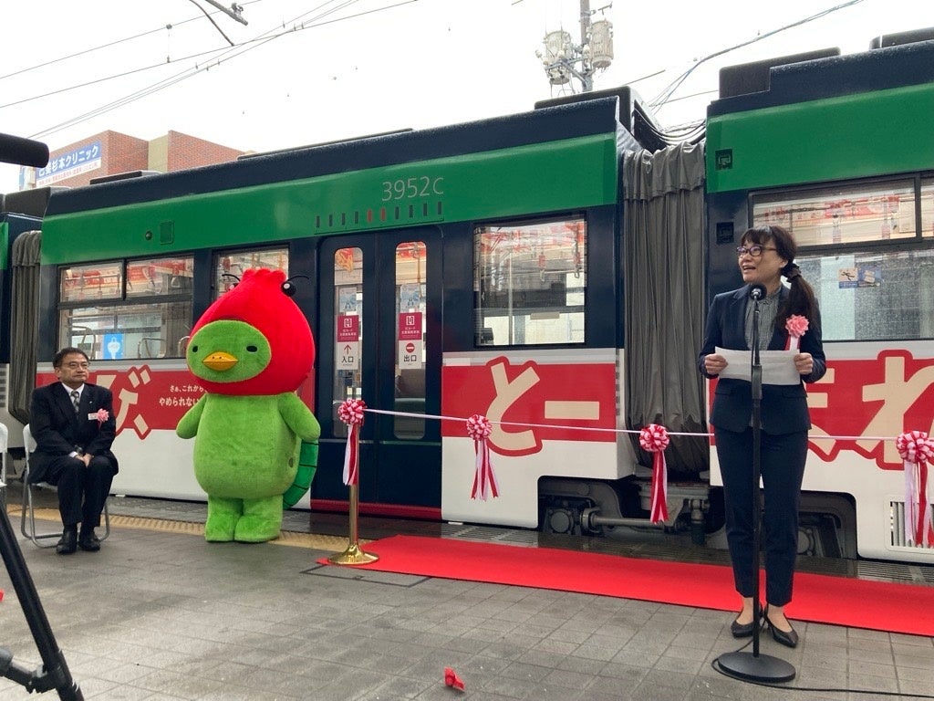 運航開始の2024年2月5日(月)には、広電西広島駅構内で、出発式を開催しました。