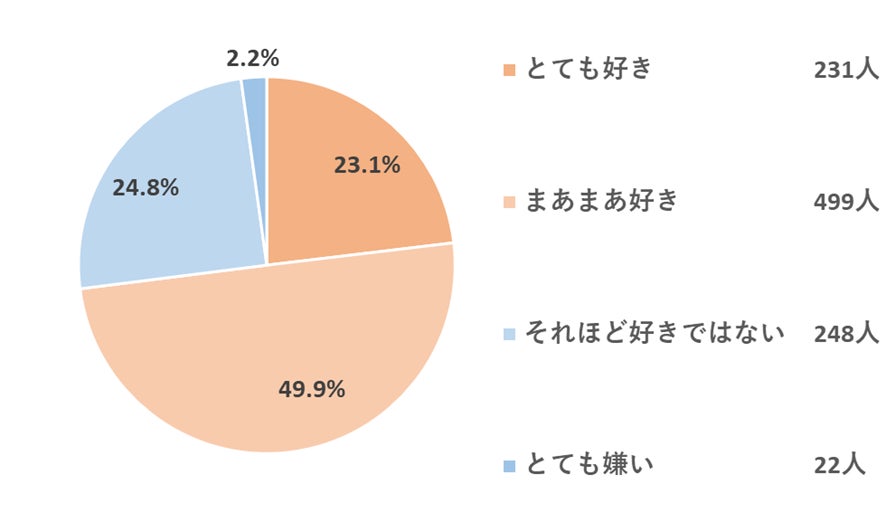 「コンビニのホットスナックは好きですか?」という質問については、「とても好き」が23.1%、「まあまあ好き」が49.9%という結果になり、合わせると73%の人が、「ホットスナックは好き」と回答していました。