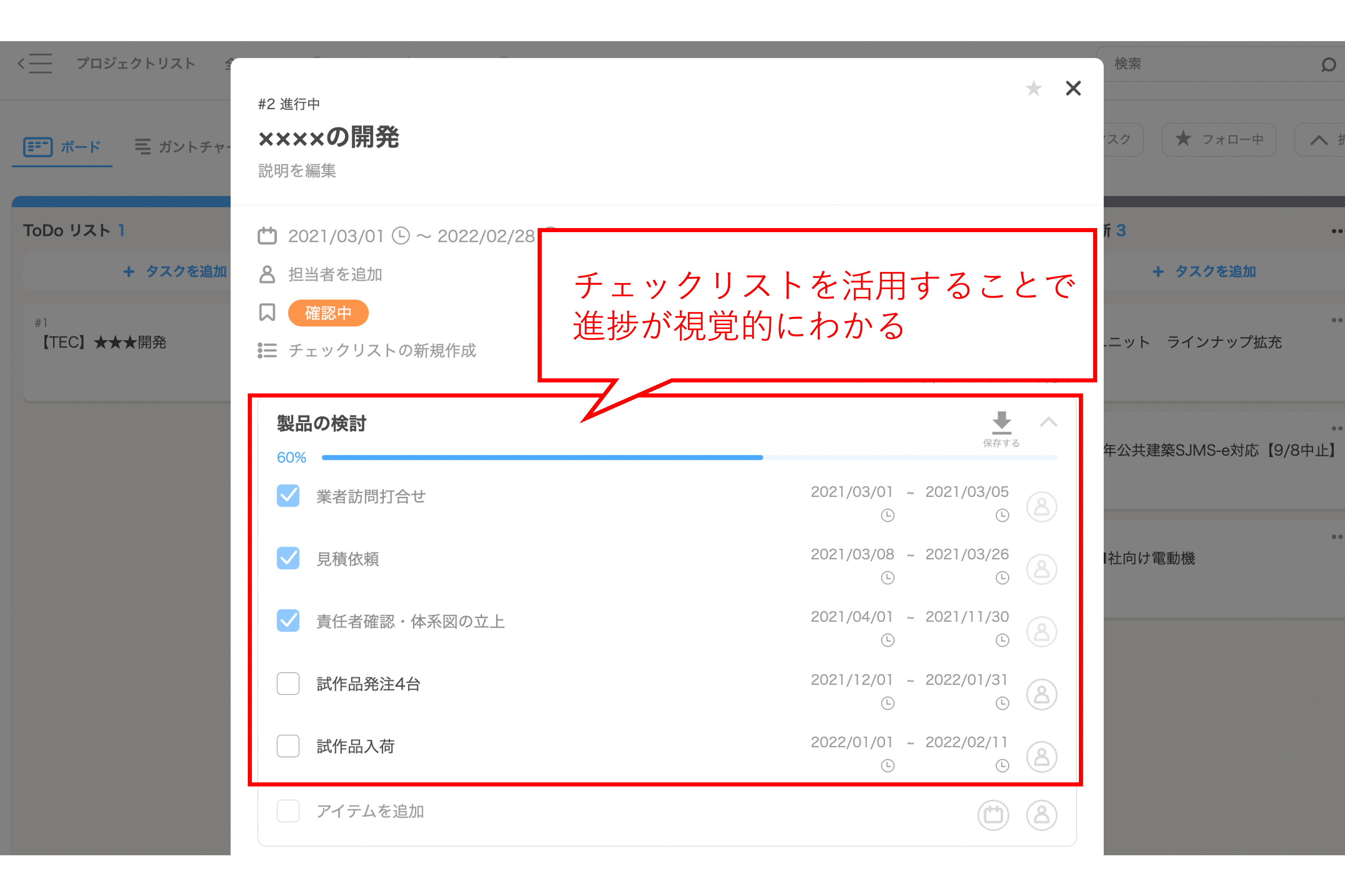 さらに、各タスクのチェックリストを見れば、全体の進捗と自分がやるべきことが視覚的にわかります 。コメント欄でも詳細状況を把握することで、週次ミーティングのための事前準備の時間が減りました。