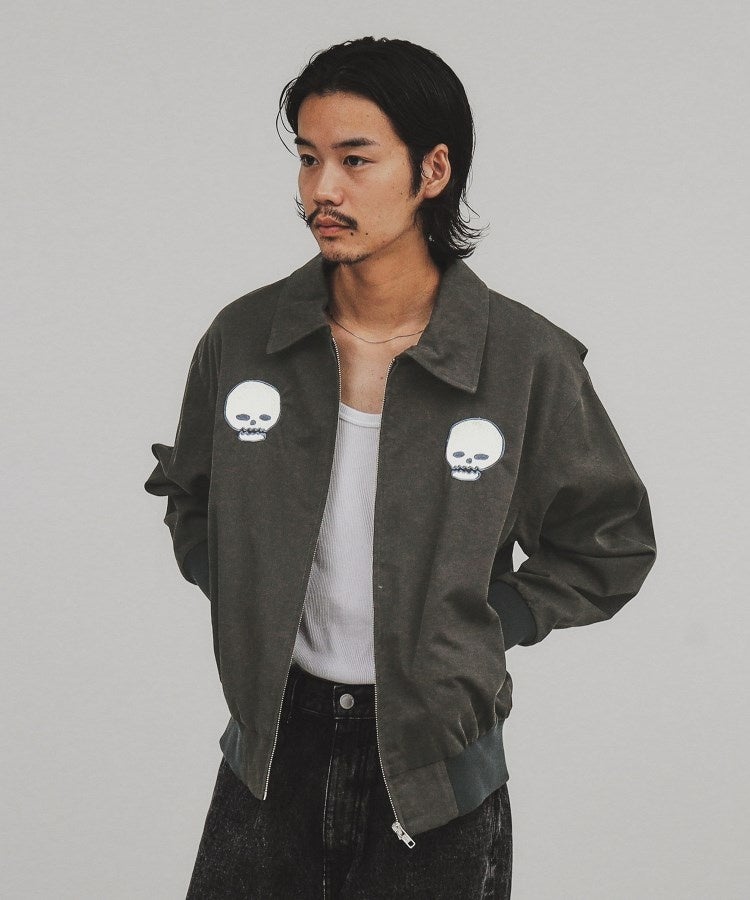 あゆた自身が描いたゆるいスカルモチーフを刺繍したブルゾン。