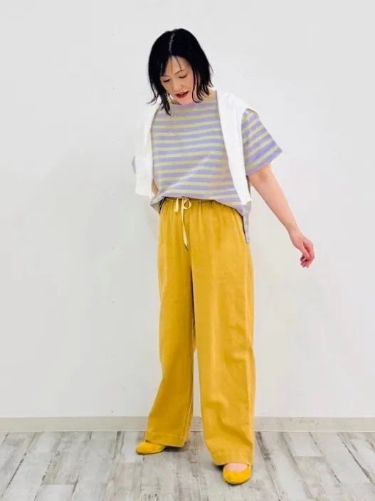 夏のカジュアルコーデにぴったりなボーダーTシャツに、リラクシーなワイドパンツを合わせたコーディネート。SIPULIらしいポップなカラーが遊び心のあるカジュアルコーデに仕上げます。