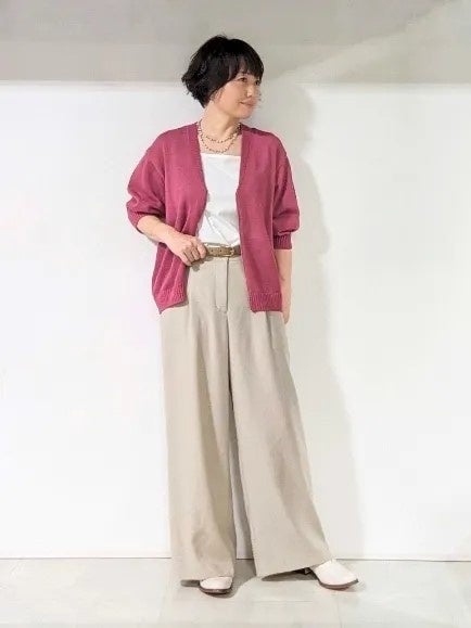 夏に着たくなる鮮やかなカラーのカーディガンを、ワイドパンツでバランス良くコーディネートしてみました。