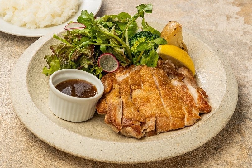 大山地鶏のむね肉を低温でじっくり焼き上げ、しっとりとした旨味を閉じ込めました。ポン酢と九条ねぎでさっぱりしながらも、しっかりとした味わいはご飯との相性も抜群!身体にプラスの高たんぱく・低カロリー定食。