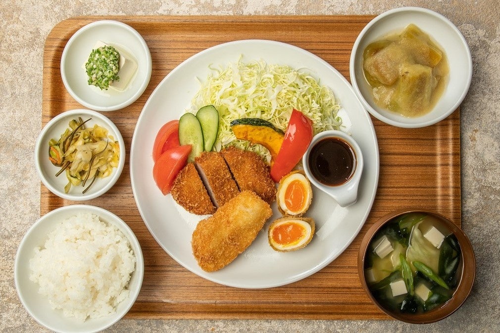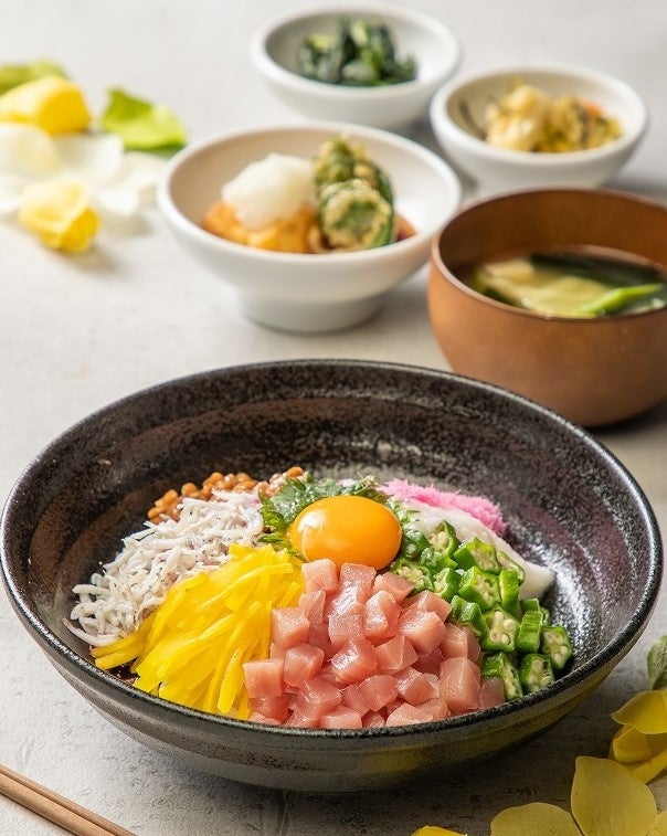4月は旬のしらす、まぐろ、おくら、納豆に山菜や菜の花などを加えた「しらすとまぐろのネバとろ丼定食」、5月は「ナシゴレンとラムサテのエスニック定食 」、6月は「夏野菜の冷しゃぶ胡麻ダレうどん」がラインナップ。月ごとの期間限定で提供いたします。
