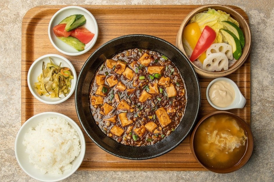 四川風の麻婆豆腐をベースに麻辣の奥深い“しびれ”と日本 ならではの“うまみ”にこだわり、辛味と旨味のバランスが取れた麻婆豆腐に仕上げました。野菜の甘味を感じられるせいろ蒸しとさっぱり小鉢の中華御前。