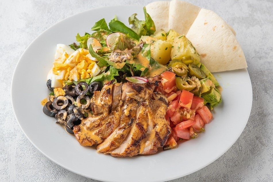 たっぷりの野菜と色どり豊かな具材を一緒に食べられるボリューム満点お食事サラダ。お好みでハラペーニョで辛味を調節したり、焼き立てのトルティーヤで巻いたり楽しみ方自由自在。