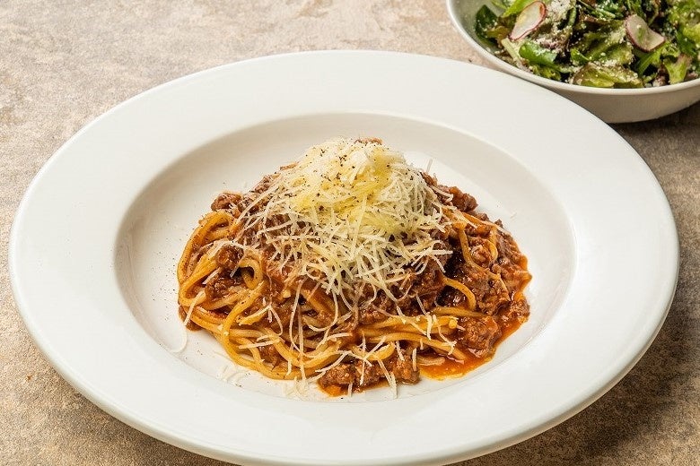 米沢牛のボロネーゼソースをもちもちの生パスタを合わせ、たっぷりのチーズを掛けたバケットと相性抜群の濃厚パスタ。