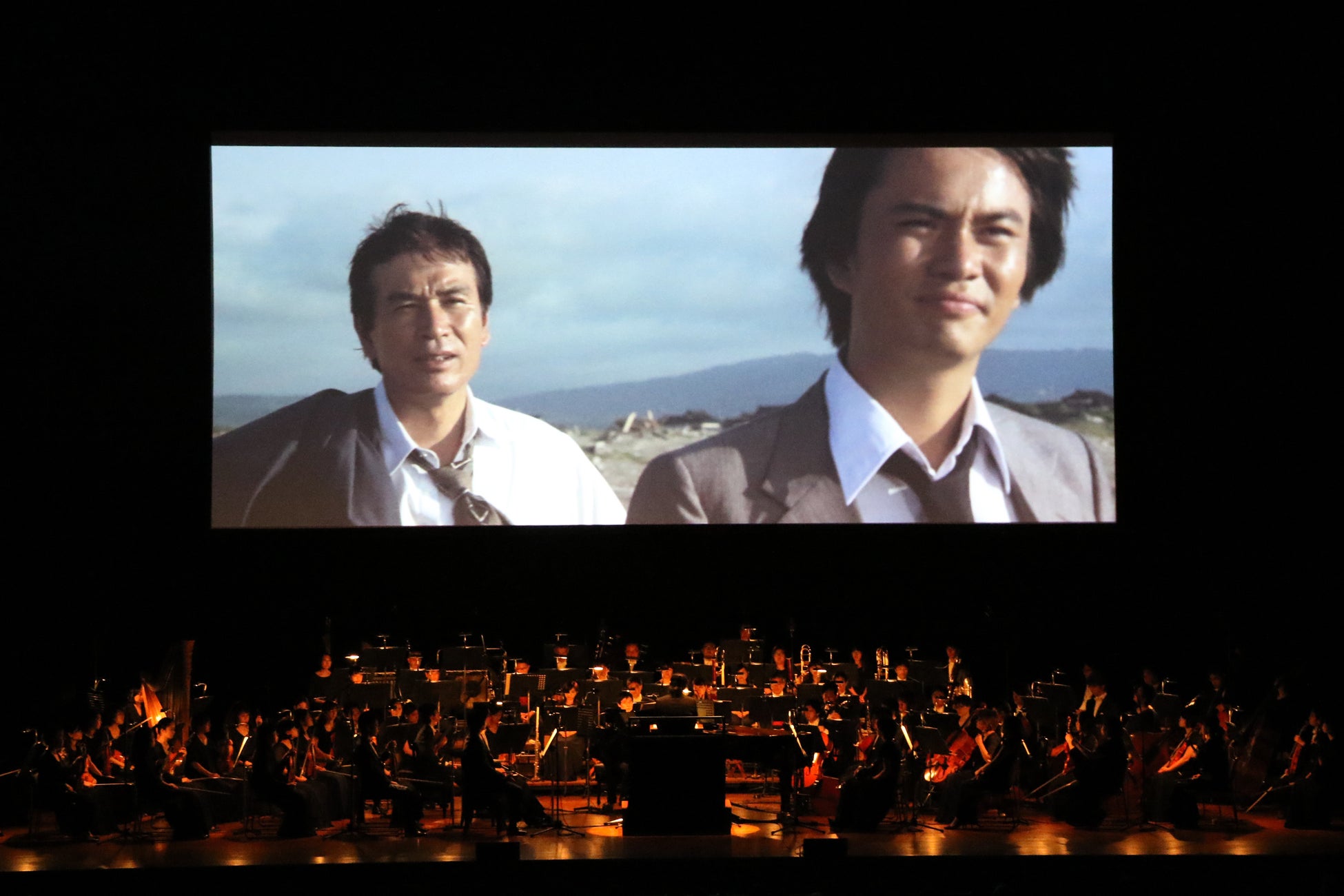 シネマ・コンサートは、映画のセリフや効果音はそのままに、音楽パートをフルオーケストラが生演奏し、大スクリーンで全編上映します。クライマックスに流れるスクリーンの中の「宿命」のコンサートシーンと、現実のオーケストラによる演奏がリンクするかのような体験はシネマ・コンサートならではです。