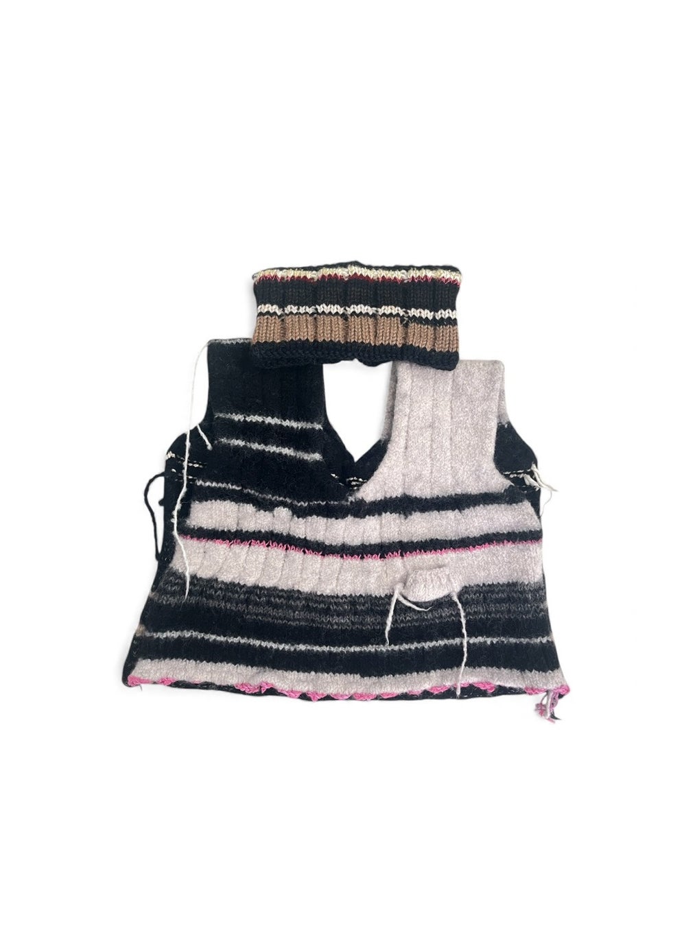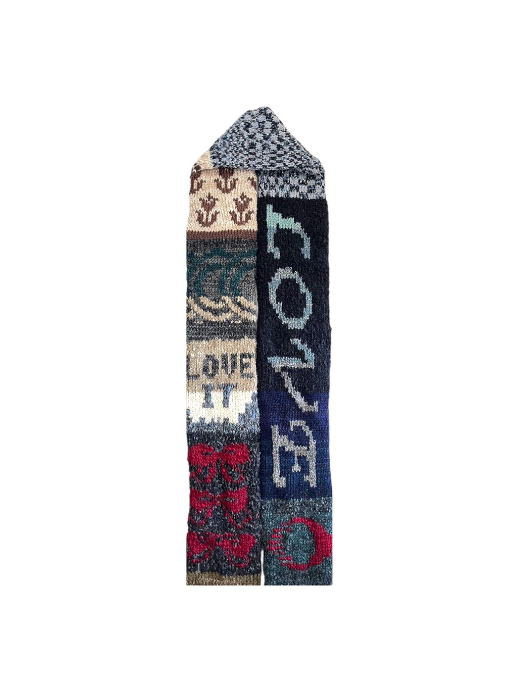 お好きなニットパターンを3柄お選びいただき、針と余剰糸を使って縫いつないでいきます。縫い合わせる箇所は2〜4箇所ほど。配置や組み合わせは自由でご自身だけのオリジナルマフラーをお作りいただけます。