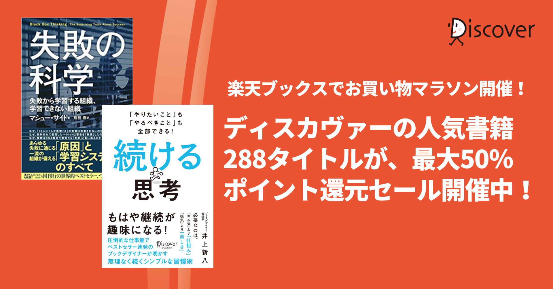 ディスカヴァーの人気書籍288点が、最大50%ポイントバック!楽天ブックスのお買い物マラソンセール開催中