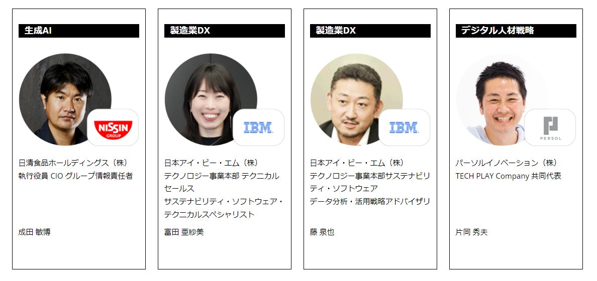 業界のトップランナーたちが「生成AI」「製造業DX」「デジタル人材戦略」など注目のテーマで講演します。