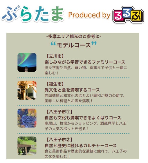 (1)多摩地域の観光情報提供とモデルコースの掲載