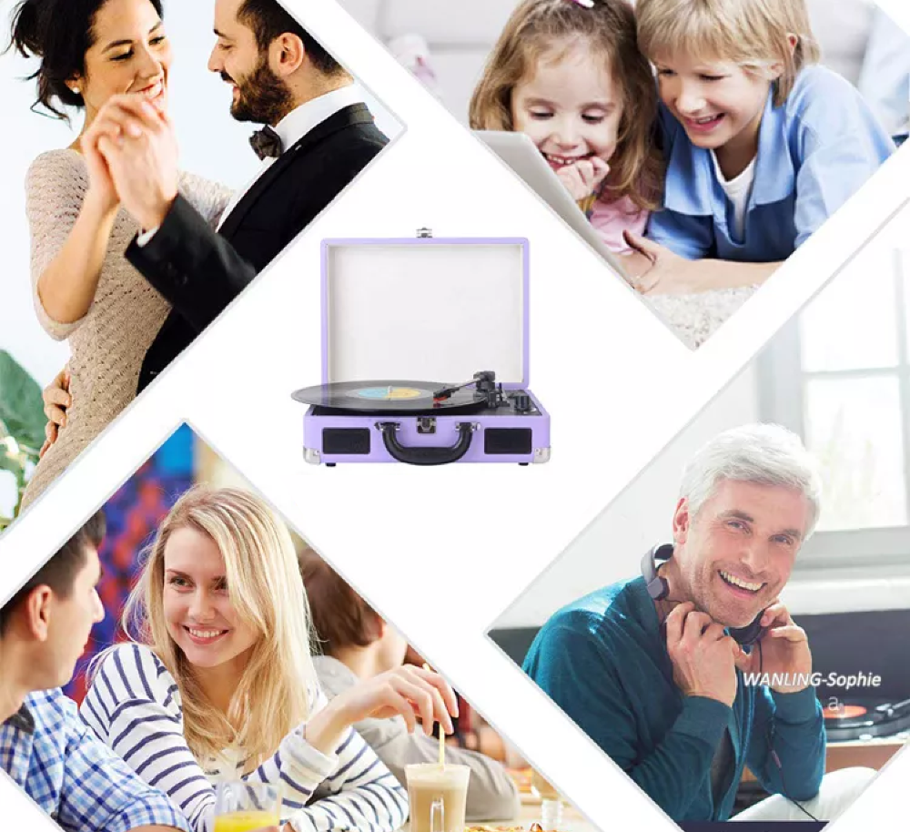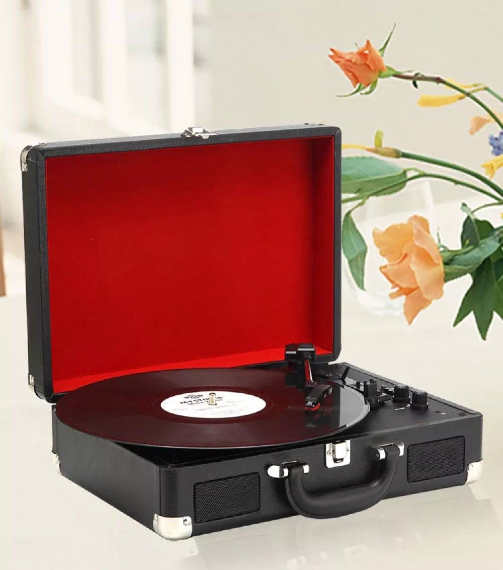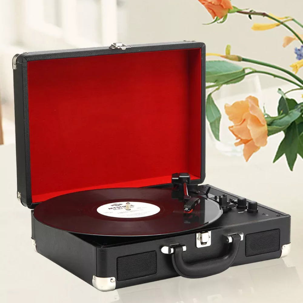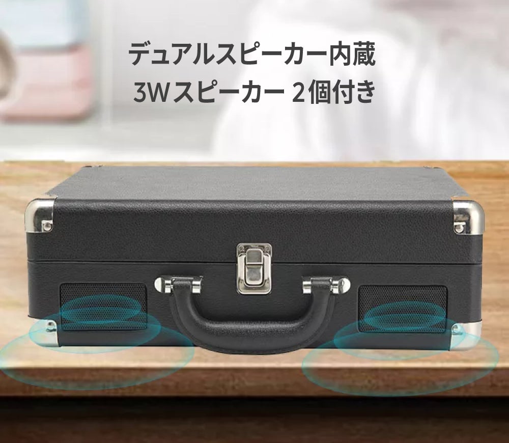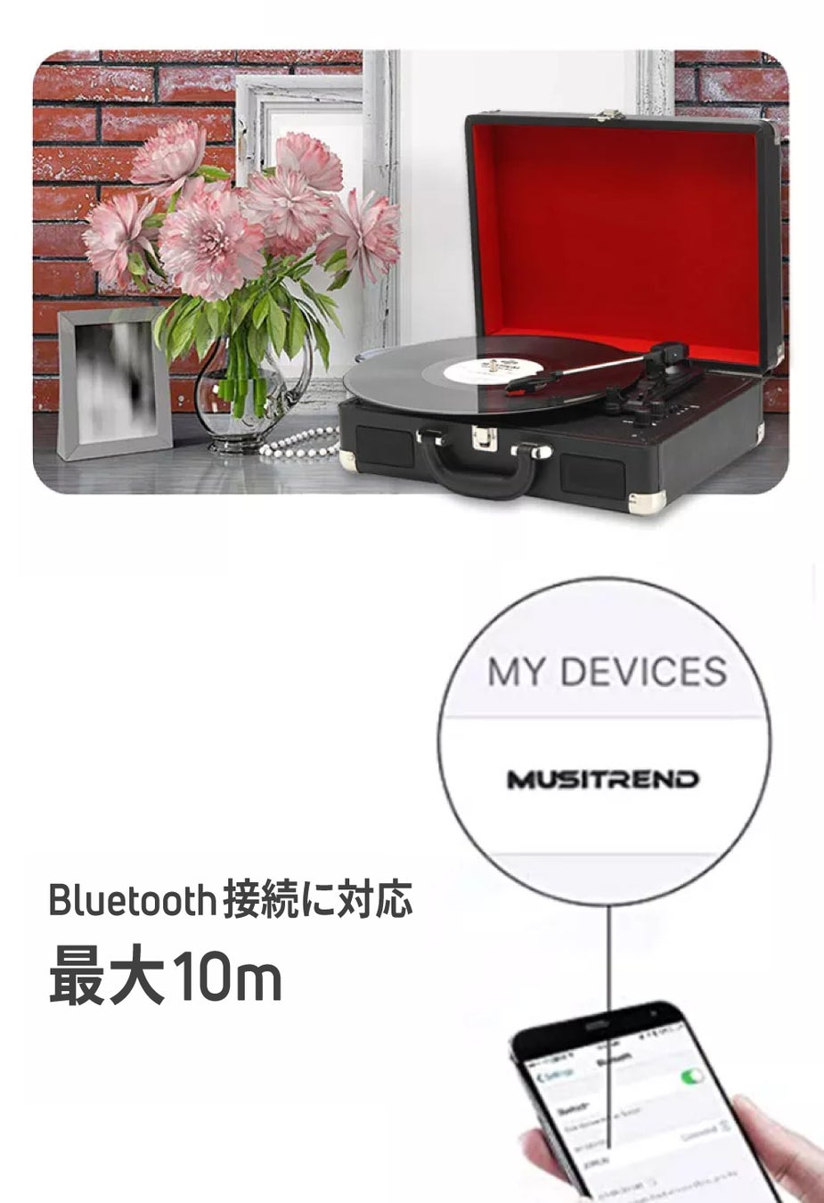 レトロデザインのポータブルレコードプレーヤー【BLUETOOTH搭載/トランク型/スピーカー内蔵/持ち運び便利】