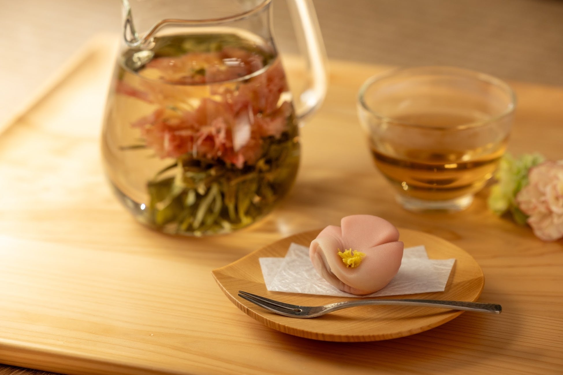 特徴4 花暦を表現した和菓子とお茶のセットを提供