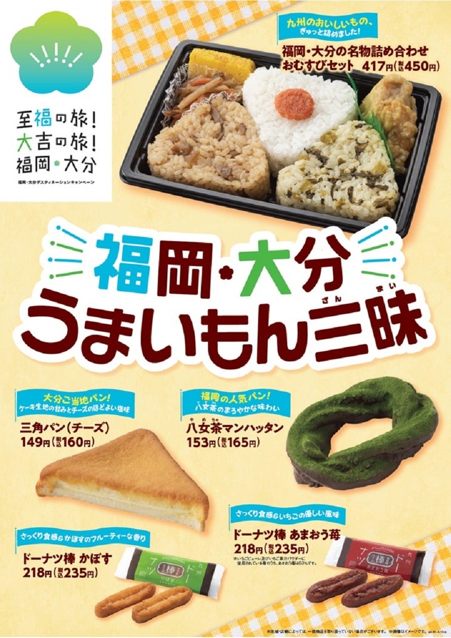 このたび、福岡・大分DCの開催を記念して発売する商品には、福岡県、大分県の食材や郷土料理を使用しており、各商品のパッケージには本キャンペーンのロゴをデザインいたしました。ファミリーマートは商品の発売を通じて、福岡・大分DCを盛り上げてまいります。