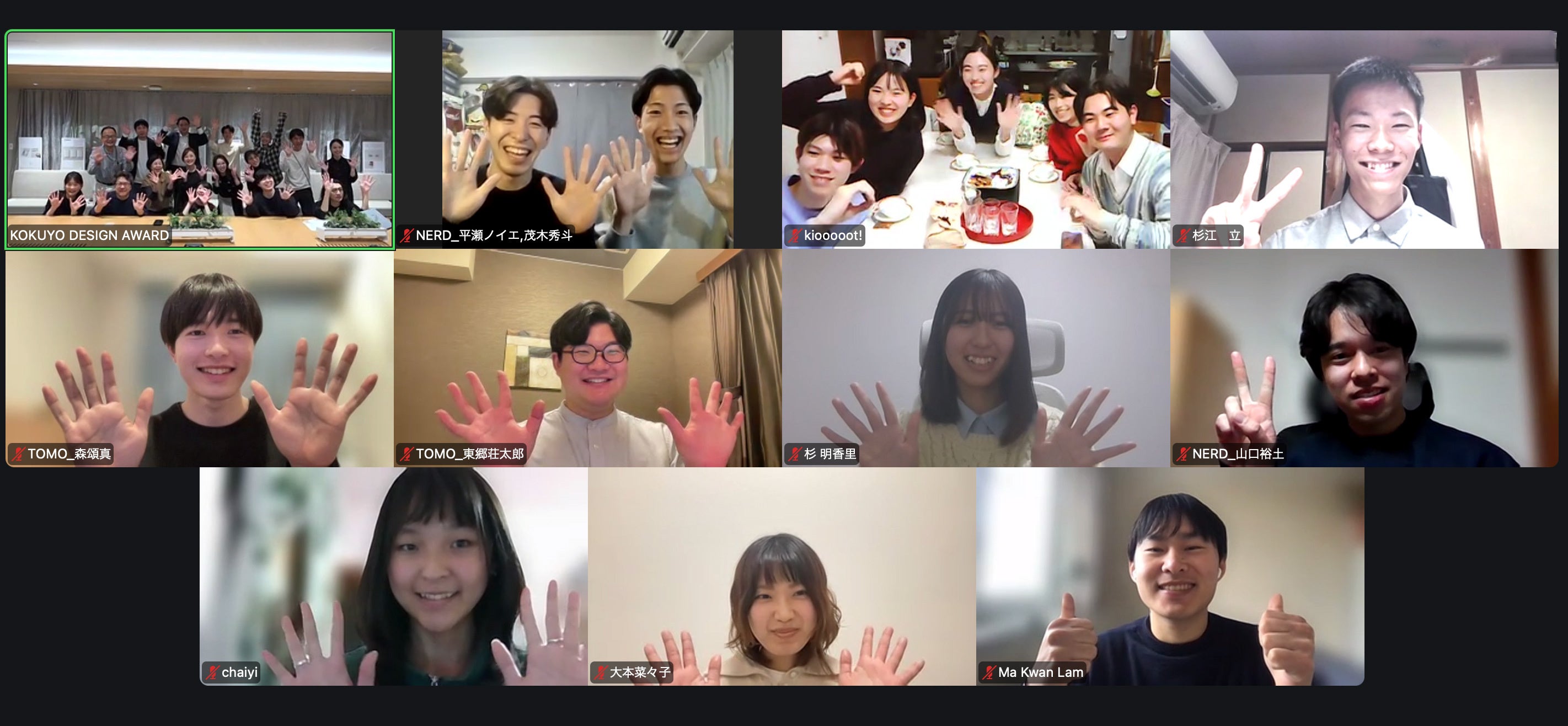 本賞の審査にあたっては、コクヨの事業領域である「働く・学ぶ・暮らす」のワクワクする未来を予感させるかを軸に審査を行いました。審査会では、職種の垣根を超えたコクヨグループ社員が各作品について意見を交わしました。その結果、選定された10作品の受賞者には、表彰式にてトロフィーと賞金3万円が贈呈されました。受賞者は、日本全国、また香港や台湾の学生もおり、表彰式はオンラインで開催されました。