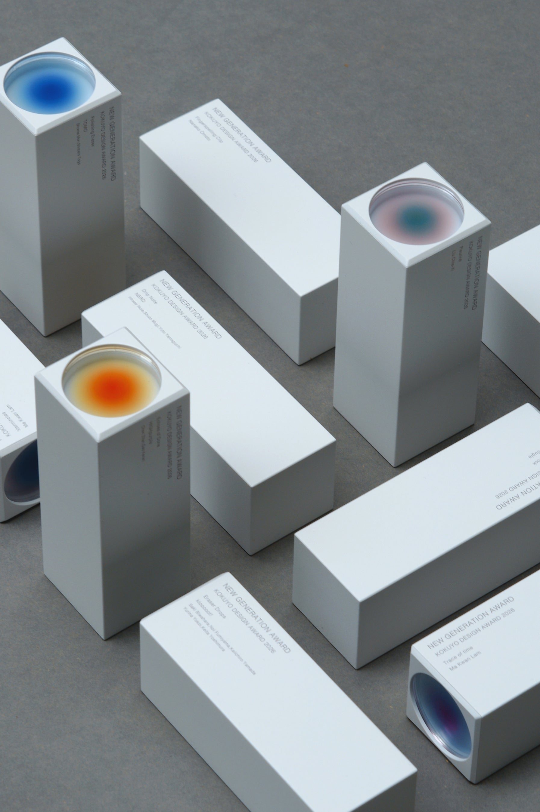 受賞者に授与したトロフィーは、コクヨのデザイナーが制作しました。一石を投じた瞬間に広がる波紋を、10個のトロフィーに閉じ込めています。それぞれ異なる表情をもつ波紋は、受賞者の方々の唯一無二の視点から広がった共鳴の証です。デザインの未来を担う受賞者へ、これからも自身の視点を大切にしながら、あなただけの一石を投じ続けてほしいという思いを込めて制作しました。