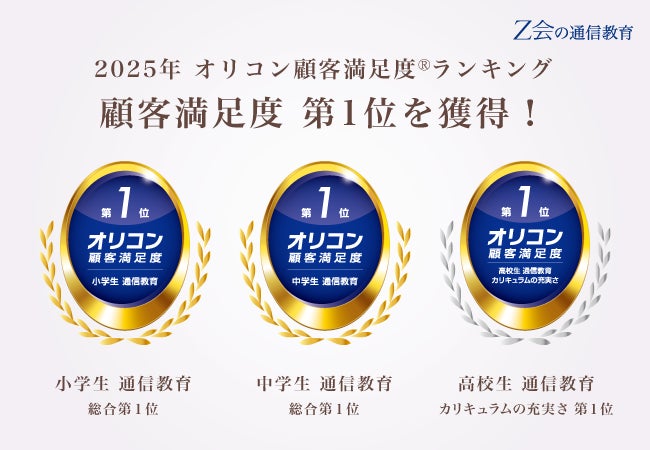 株式会社増進会ホールディングス(Z会グループ)のグループ会社である株式会社Z会は、株式会社oricon ME(本社:東京都港区、代表取締役社長:小池 恒)が2025年1月6日に発表した「オリコン顧客満足度(R)ランキング」の「小学生 通信教育」にて10年連続総合第1位、「中学生 通信教育」にて3年連続総合第1位、「高校生 通信教育」にてカリキュラムの充実さ 第1位を獲得しました。