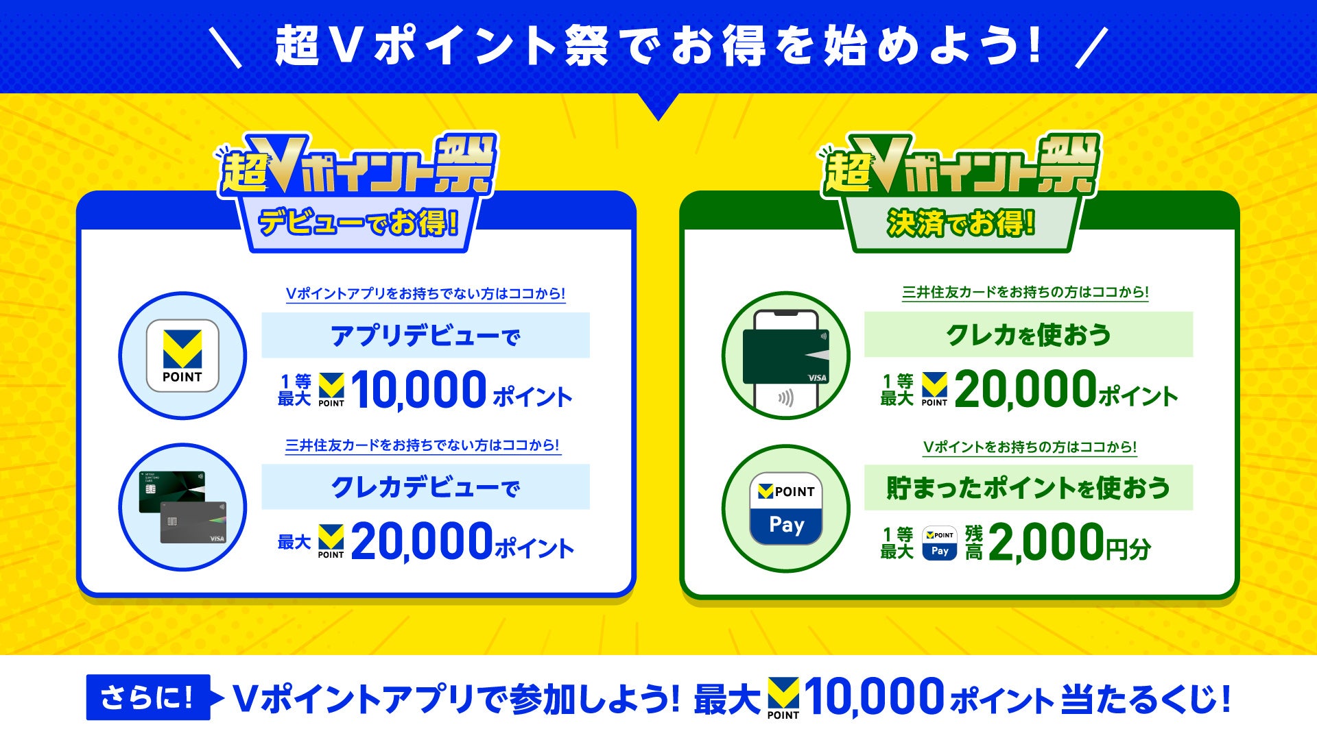 Vポイントマーケティング株式会社(本社:神奈川県横浜市、代表取締役 社長執行役員:廣田 精吾、以下「Vポイントマーケティング」)と三井住友カード株式会社(本社:東京都江東区、代表取締役 社長執行役員 CEO:大西 幸彦、以下「三井住友カード」)は、共通ポイントサービス「Vポイント」の2周年を記念し、2026年4月22日(水)から6月30日(火)までの間、Vポイントを軸とした大型キャンペーン 「超Vポイント祭」 を開催いたします。