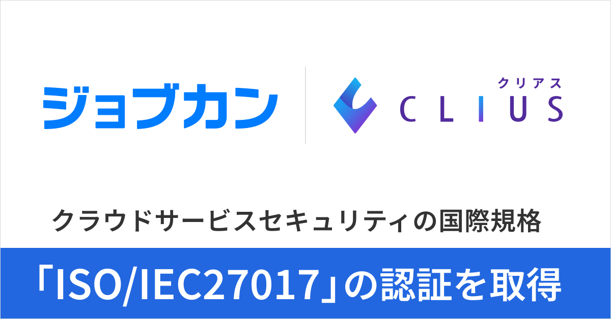 「ジョブカン」・「CLIUS」が「ISO/IEC27017」の認証を取得 クラウドサービスの情報セキュリティ管理・運用においてより一層の強化体制を確立