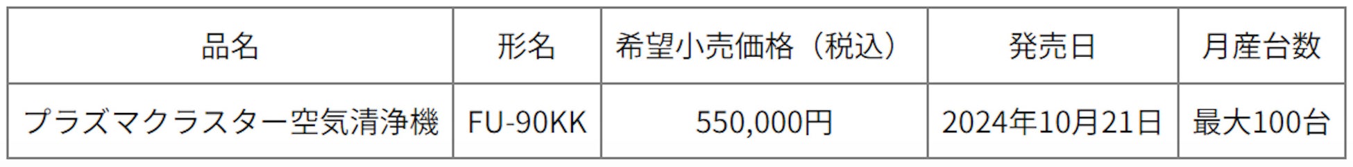 プラズマクラスター空気清浄機<FU-90KK>を発売