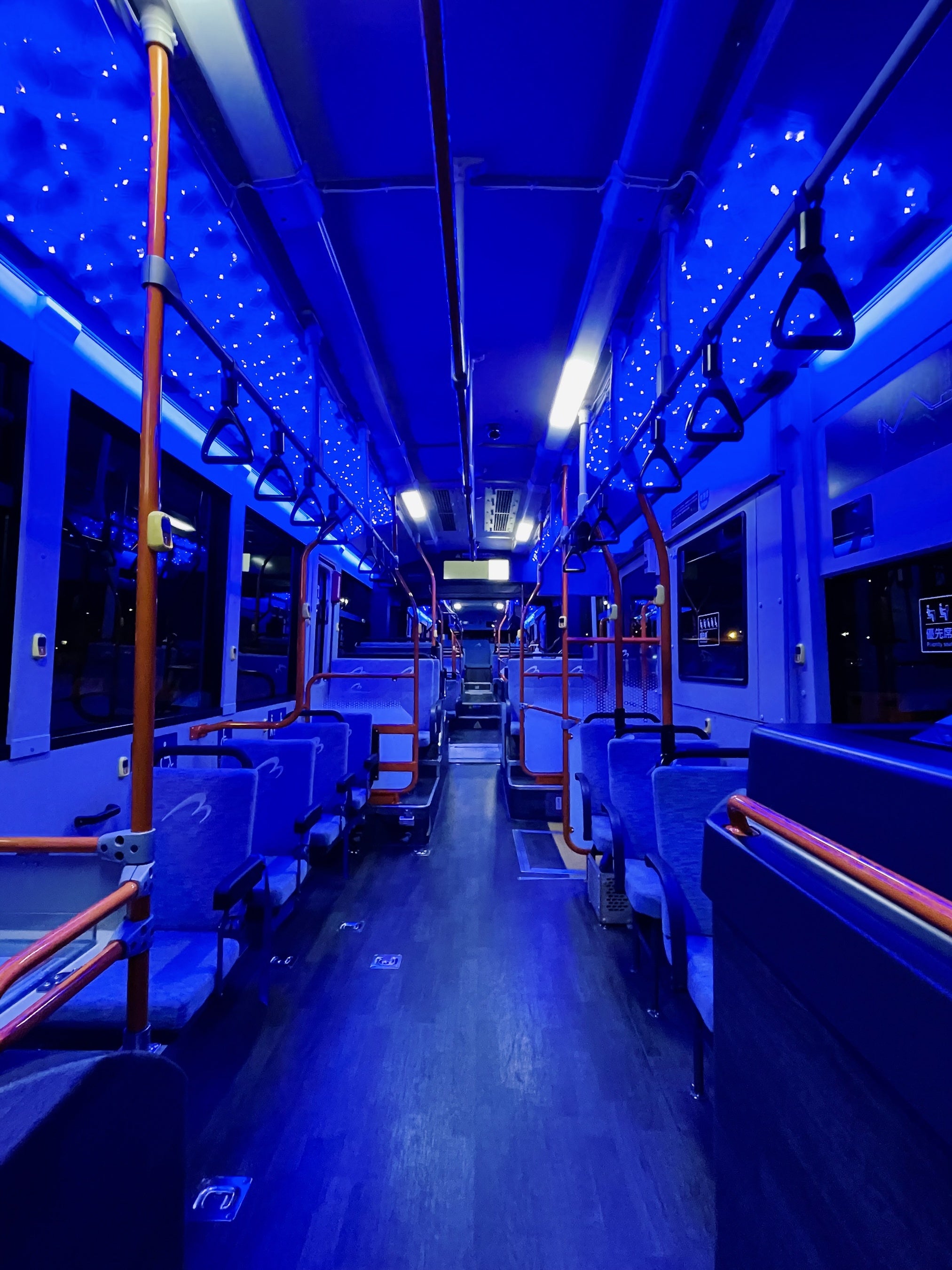 ⽇没以降(おおむね16 時30 分以降に出発する便)にバス⾞内をイルミネーション装飾して運⾏します。
