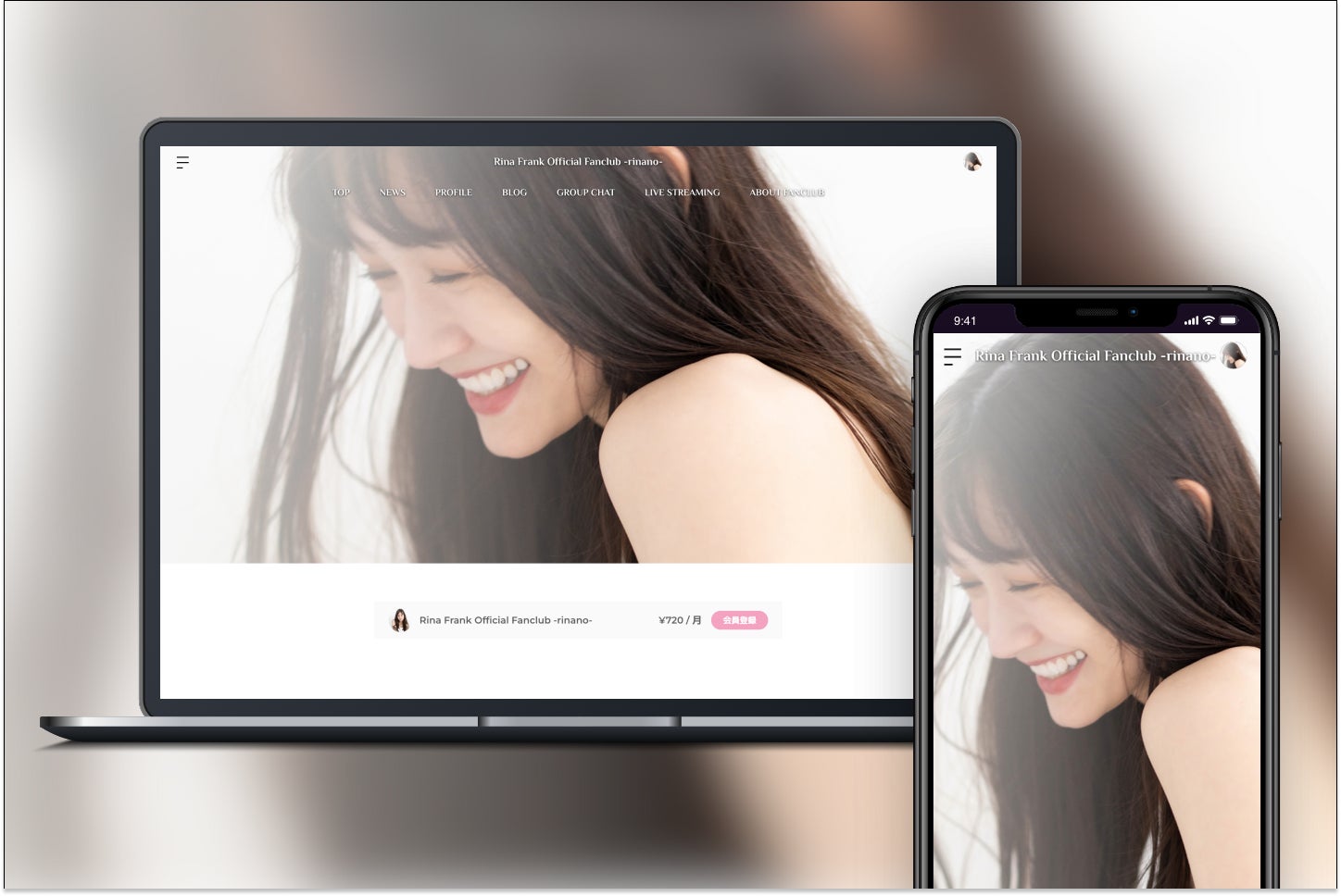 どなたでもご利用いただけるニュースやスケジュールなどに加え、ファンクラブ会員限定で楽しめるブログやライブ配信、グループチャットなどを通して、ここだけでしか見ることのできないフランク莉奈の素顔を垣間見れる場となっています。