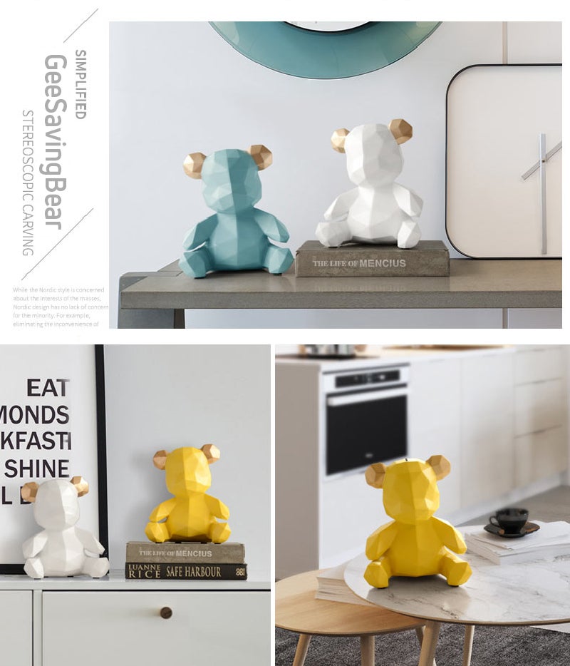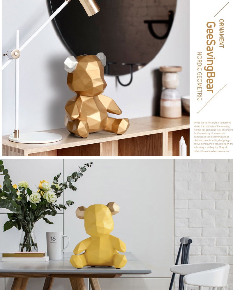 幾何学的な形状が魅力!インテリアにも最適な貯金箱【北欧スタイル/卓上オーナメント/テディベア】