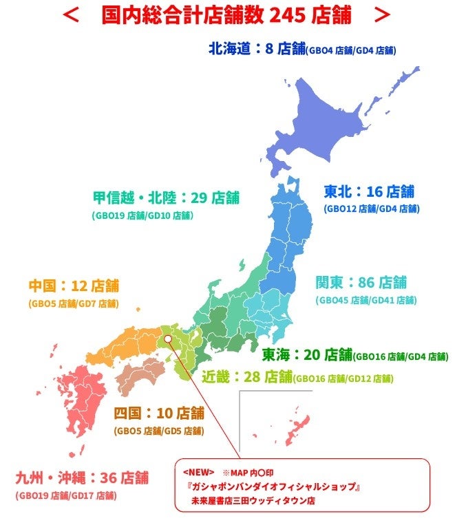 < 国内で展開中のバンダイナムコアミューズメントのカプセルトイ専門店 >