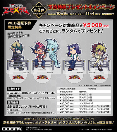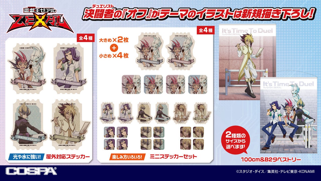 決闘者の『オフ』がテーマの、アニメ『遊☆戯☆王』シリーズCOSPA(コスパ)新規描き下ろしグッズ&予約特典キャンペーン。第4弾『遊☆戯☆王ZEXAL』がラインナップいたしました。