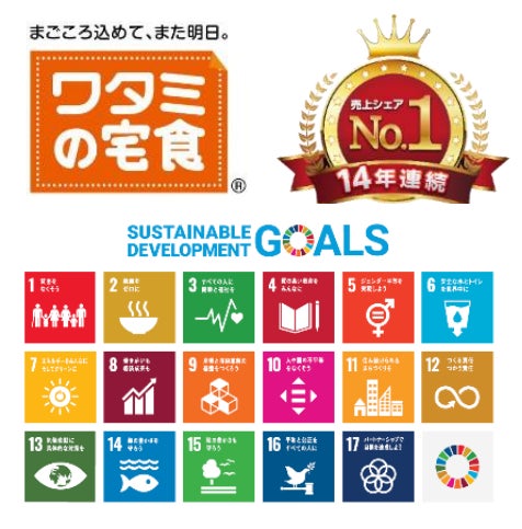 「ワタミの宅食」は、日替わりのお食事と“まごころ”をお届けすることで“社会を支えるインフラ”となることを目指し、事業を展開しています。お弁当・お惣菜は、お客さまと同じ地域に住む“まごころスタッフ”がお届けしています。毎日約24万食のお弁当・お惣菜をお届けしており、病者・高齢者食宅配市場「売上シェア14年連続 No.1」※(2010年~2023年)を達成しています。