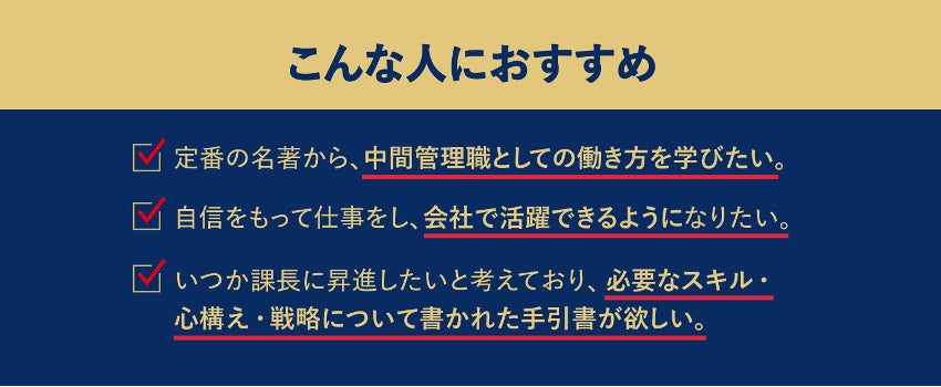 現在、課長として活躍されている方、課長に任命されたばかりの方、そして、いつか課長になりたいと考えている方に、ぜひ読んでいただきたい1冊です。