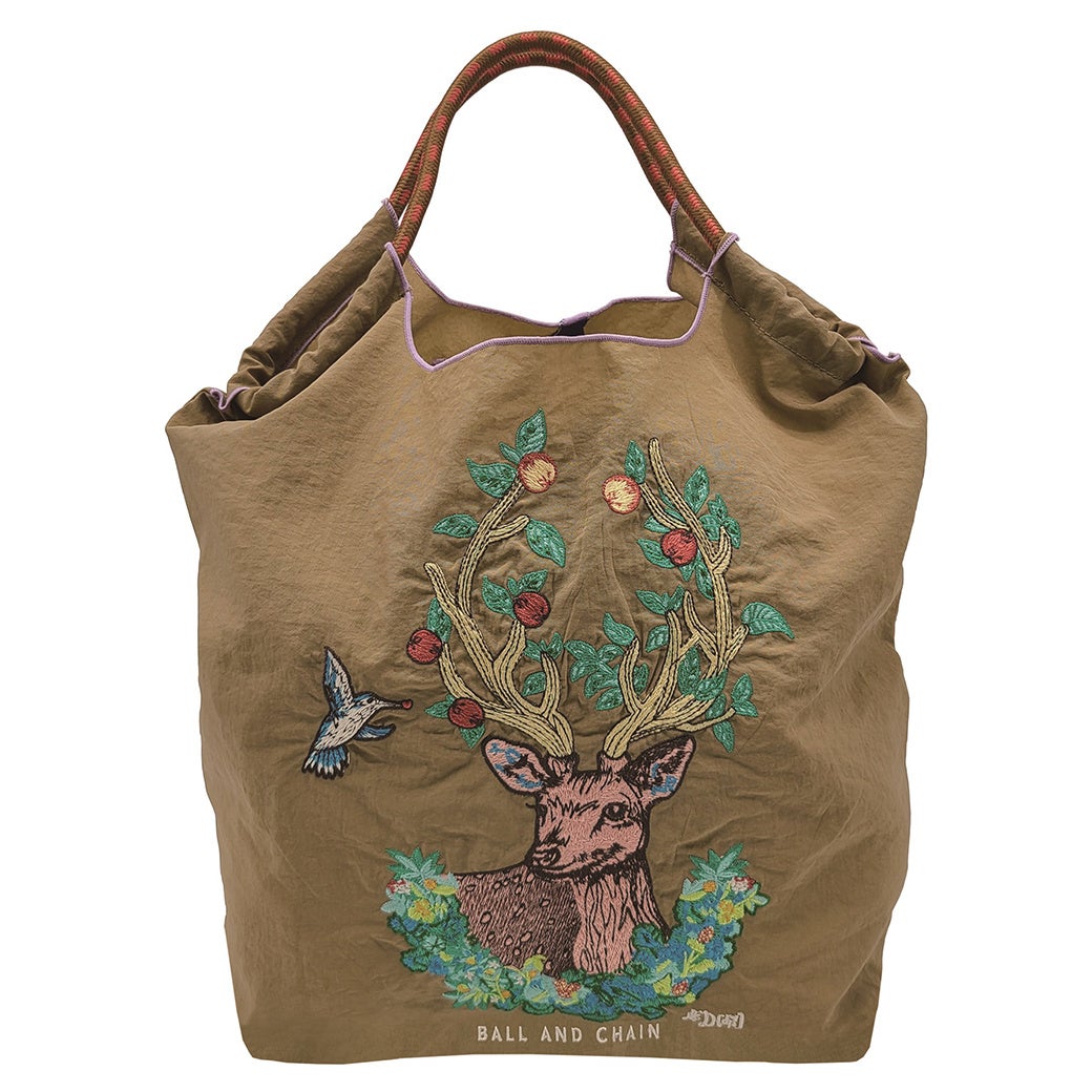 日常使う「ショッピングバッグ」だから、見た目にこだわりたい、気分をアゲたいそんな希望を叶えるブランド「Ball&Chain」。耐久性、撥水性に優れた厚手のポリエステル素材に、刺繍によるグラフィックデザインを施したショッピングバッグです。