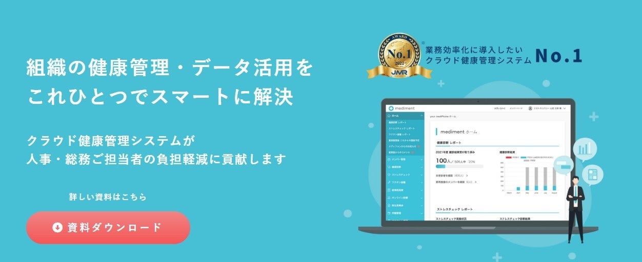 人事労務ご担当者様向けSaaSプロダクト!クラウド健康管理システム「mediment(旧:your mediPhone) 」が、日本マーケティングリサーチ機構の調査でNo.1を獲得しました。
