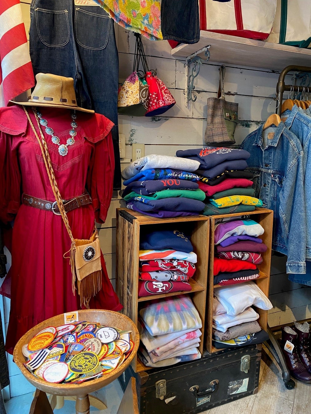 アメリカ西海岸のカルチャーからインスパイアされた古着を中心に、インディアンジュエリー、オリジナルリメイク商品、雑貨も提案させて頂きます。