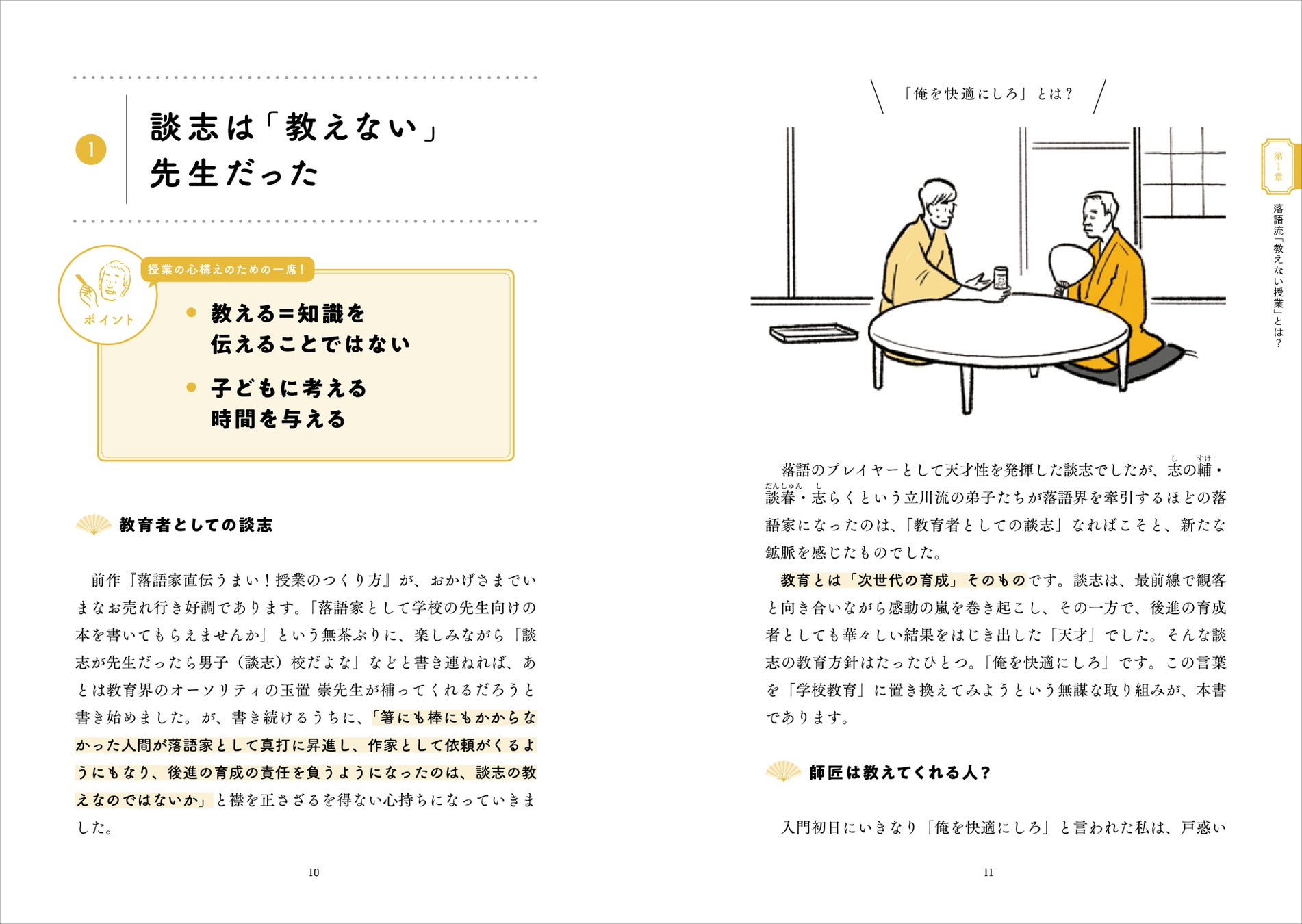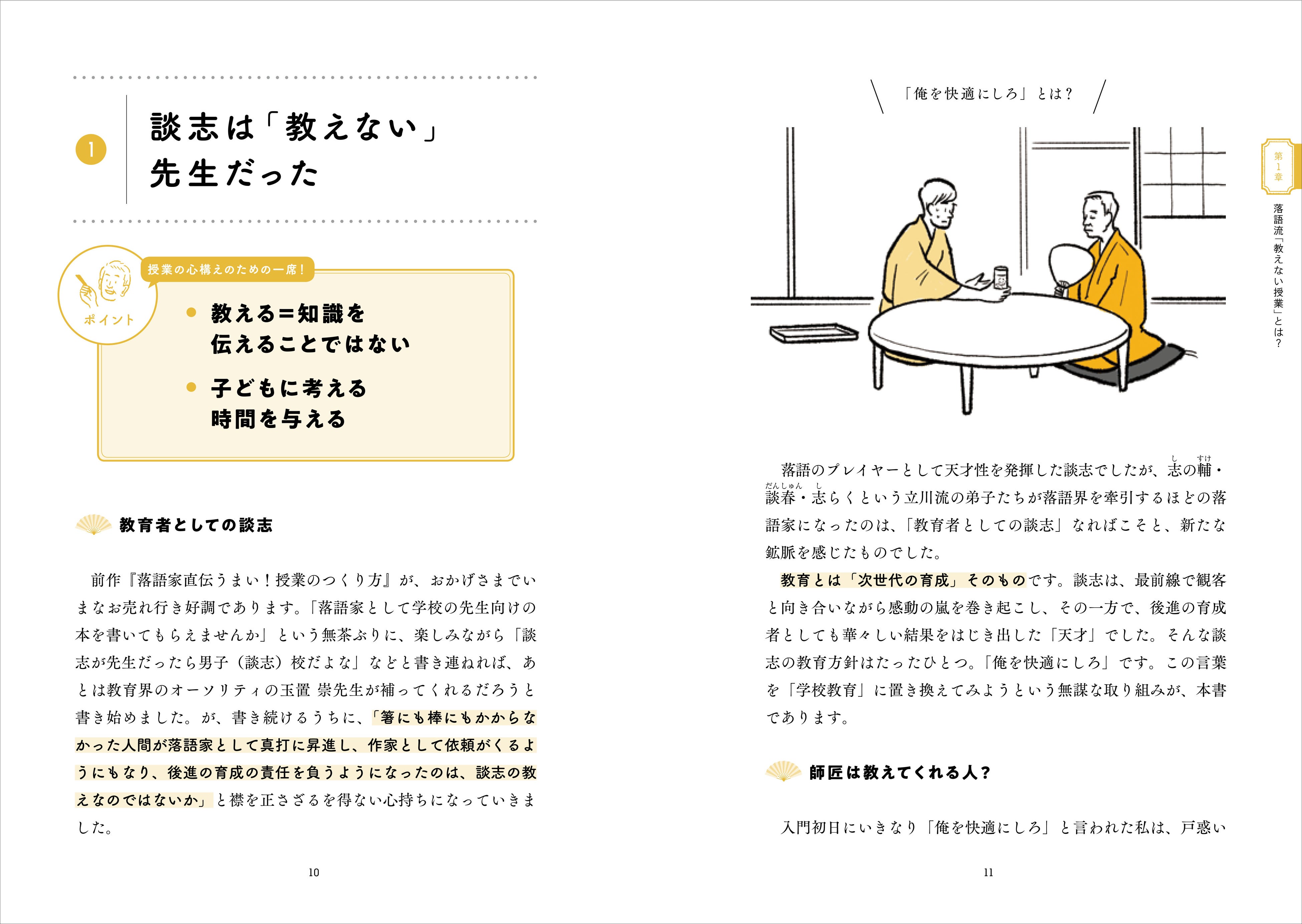 「話し方」「ユーモア」といった落語のエッセンスと教育の相性の良さを知る2人の共著により、学校現場だけでは得られない観点と、学校現場でしっかり活用できる実用性を兼ね備えた、革新的な一冊が実現した。
