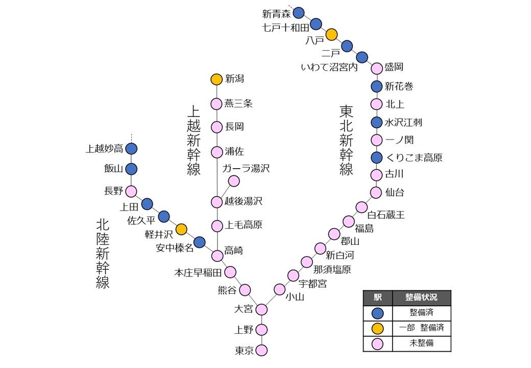 現在は、新幹線が通過するホームがある一部の駅の風圧対策として、ホームドアを設置しています。