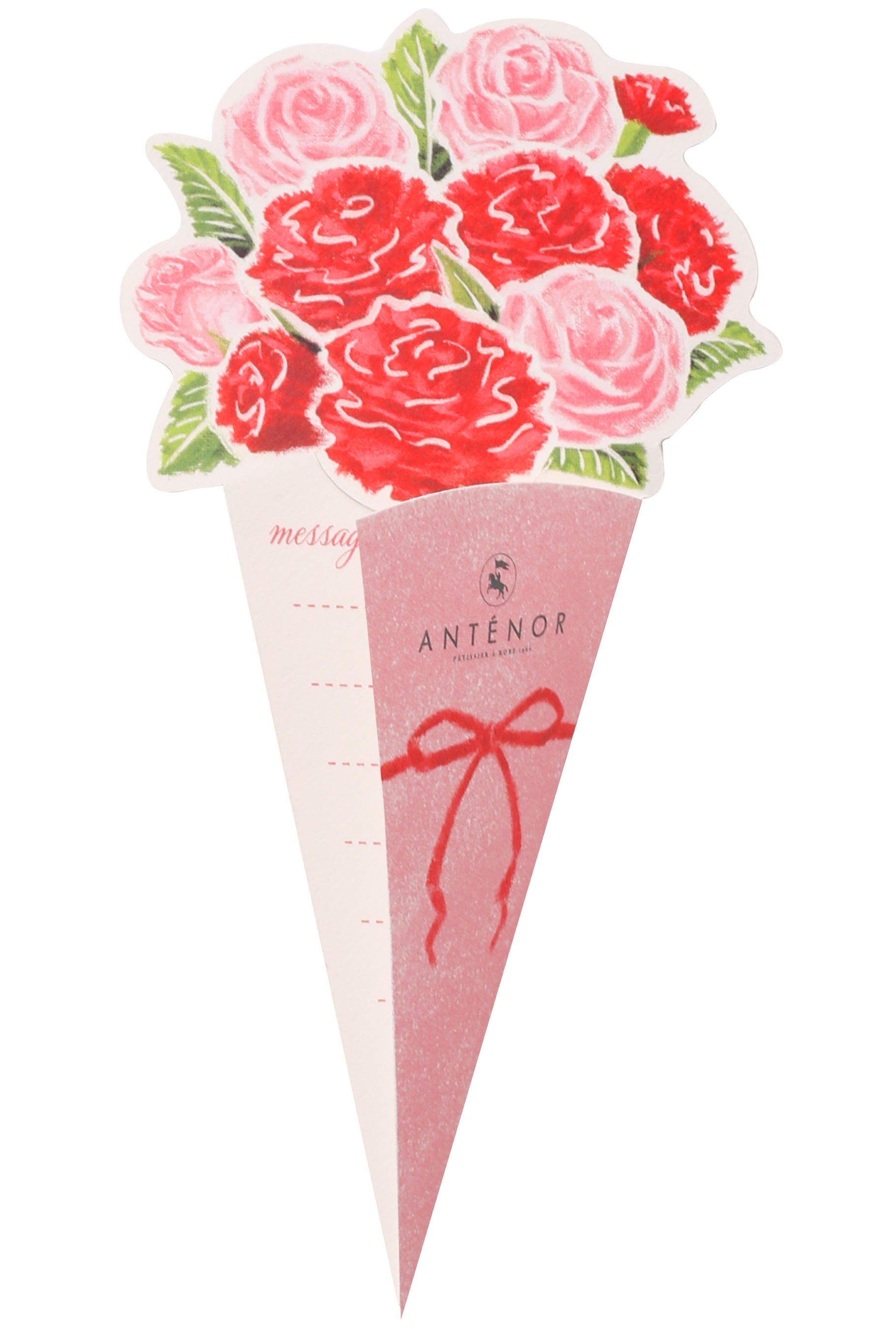 アンテノールの店頭にて商品をお買い上げいただいたお客様に、カーネーションの花束をデザインしたメッセージカードを無料でお付けいたします。