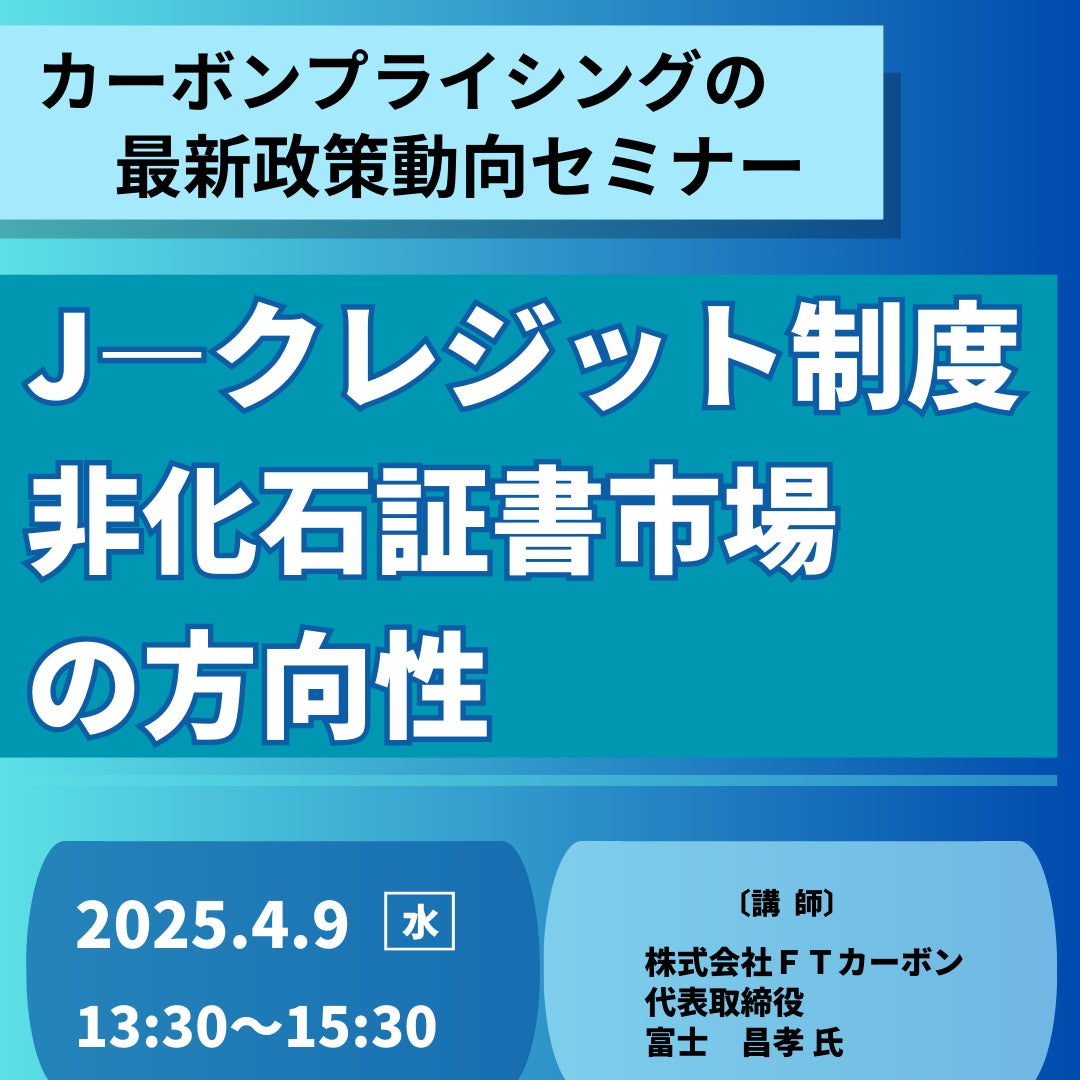 【JPIセミナー】「カーボンプライシングの最新政策動向とJ―クレジット制度 及び 非化石証書市場の方向性」4月9日(水)開催