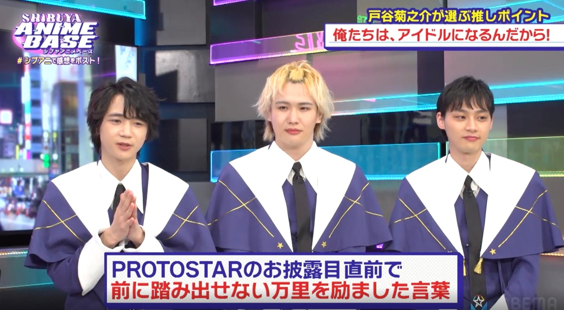 『UniteUp!』のアイドルユニット「PROTOSTAR」戸谷菊之助&山口諒太郎&平井亜門が生パフォーマンス!仲村宗悟が「PROTOSTAR」にツッコミ|SHIBUYA ANIME BASE #42